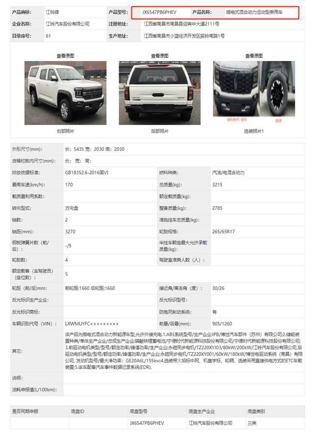 在工信部最新公布的第404批新车申报目次中,江铃申报了基于江铃正途皮卡版打造的SUV车型,新车在皮卡版基础上增多了后盖和后侧窗,6字头的居品目次也让其有了和SUV相似的路权以及年检恭候遇。