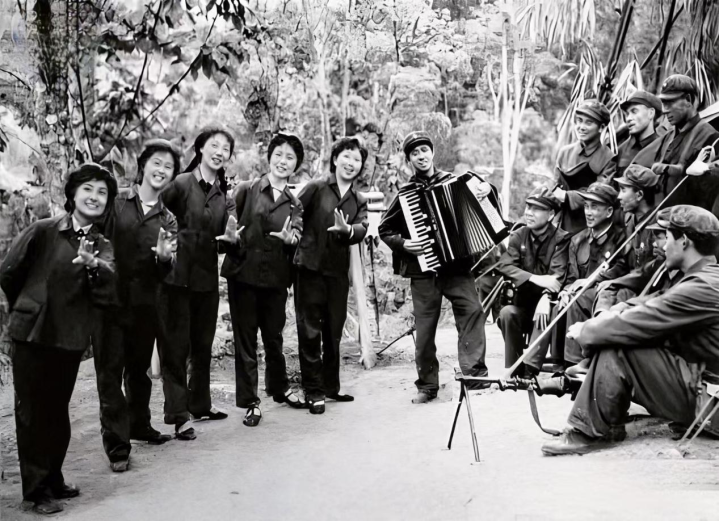 图为70年代国防文工团真切边防为兵上演